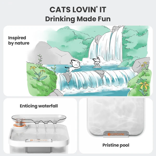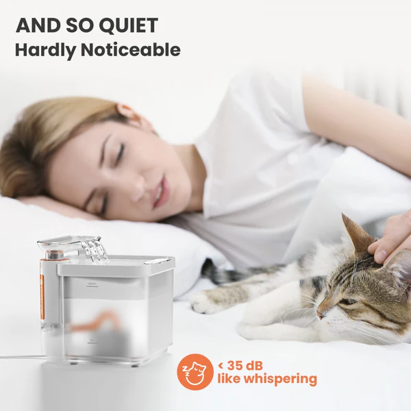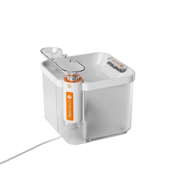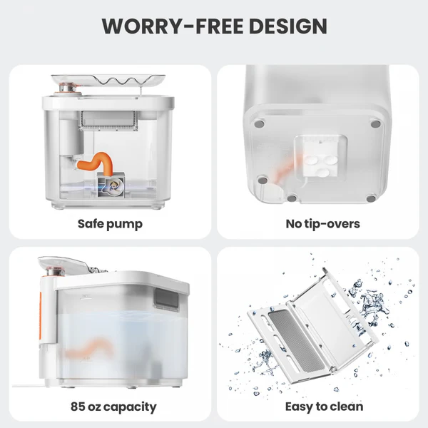 - Stainless steel filter catches hair and debris. What makes it special is that the stainless steel filter can be detached on demand, even when the fountain is still on.